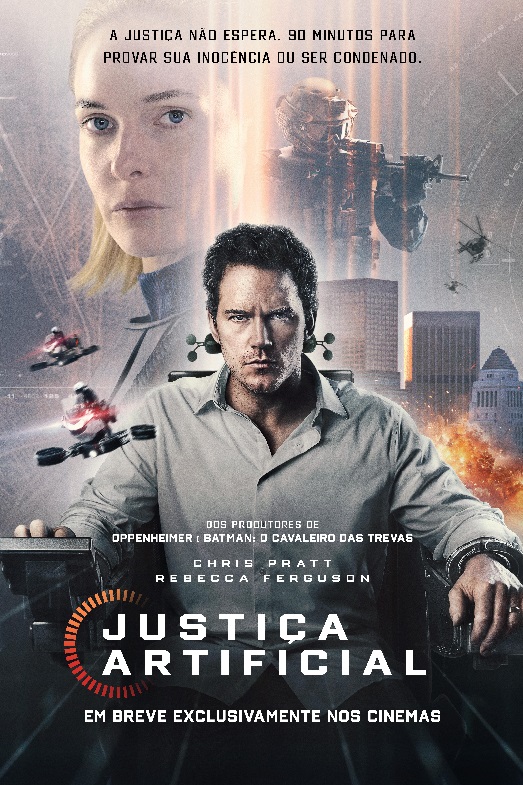 22/01/2026 — Chegou aos cinemas brasileiros o filme “Justiça Artificial”. Trata-se de um drama de ficção científica. De acordo com a sinopse oficial, um detetive é colocado no banco dos réus no tribunal. Ele é acusado de matar sua esposa. O fato ocorre numa cidade de Los Angeles do futuro. Em 2029, a tecnologia tomou conta do dia a dia da sociedade. Assim, o detetive tem apenas noventa minutos no julgamento para provar a sua inocência para uma inteligência artificial avançada que ele defendeu no passado. O destino do homem está agora nas mãos do sistema inteligente. Como protagonistas da trama aparecem o ator americano Chris Pratt e a atriz sueca Rebecca Ferguson. Ele é o Chris Raven. Ela faz a juíza Maddox.