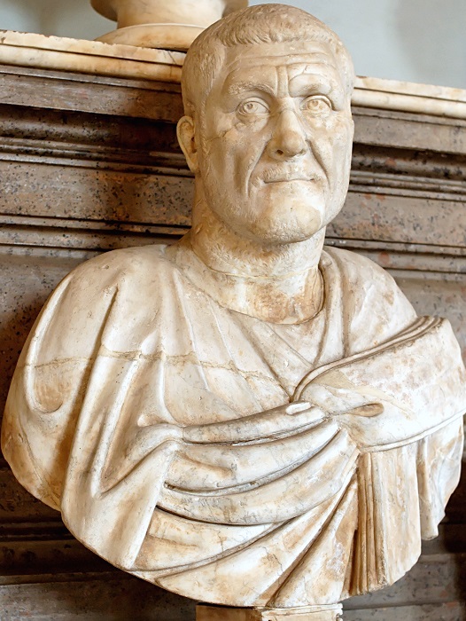 CAIO JÚLIO VERO MAXIMINO — Nasceu em dia e mês incertos do ano 173 na Trácia (território da atual Bulgária ao norte, da Grécia ao sul e da Turquia ao leste). Morreu no dia no dia 24 de junho do ano 238 na cidade de Aquileia, uma colônia militar no nordeste da Itália. Não pertencia à nobreza. De origem camponesa, ingressou no exército romano com 18 anos de idade. Ocupou cargos menores até ser recrutado para trabalhar próximo ao imperador Alexandre Severo. Com este, chegou ao cargo de comandante na guerra contra o povo alamano. Os historiadores classificam o reinado do Maximino Trácio como muito ruim. Por nunca ter estado em Roma gerou um ódio intenso da população e muitas conspirações. O reinado dele inaugurou um período de anarquia militar no império.