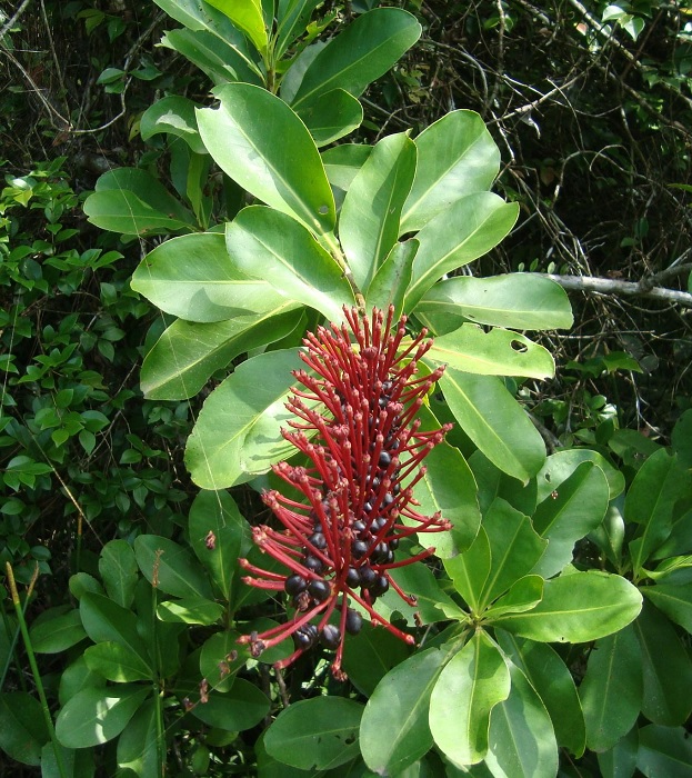 AGARRA-PÉ — Arbusto ornamental da família das marcgraviáceas, cujo nome científico é norantea brasiliensis. Ocorre em todo o litoral brasileiro. As flores vivamente sanguíneas se agrupam em longos cachos. Originária das restingas do Rio de Janeiro e do Espírito Santo, foi incluída na lista oficial de espécies da flora ameaçada de extinção na capital carioca. Ela cresce geralmente em matas litorâneas e fluviais. Tem caules ramificados, inicialmente eretos e que se tornam escandentes conforme o crescimento. Também se apresenta como trepadeira e até mesmo como arvoreta, sendo capaz de alcançar oito metros de altura.