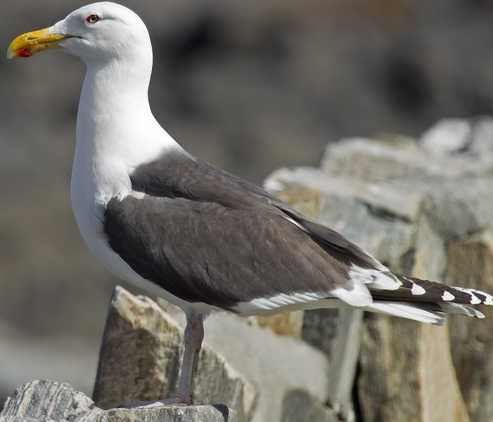 ALCATRAZ — Gaivota de grandes dimensões da família das Laridae, cujo nome científico é Larus marinus. O nome tem origem no árabe “al-ġaţţās”. Significa “aquele que mergulha”. Mede 79 centímetros de comprimento e tem envergadura de até 170 centímetros. O corpo é branco e a parte superior das asas preta com pontas brancas. O bico é amarelo com uma pinta vermelha na ponta inferior. O anel ocular é vermelho. É muito semelhante à gaivota-de-asa-escura, distinguindo-se desta principalmente pelo tamanho, por apresentar as pernas rosa-esverdeadas em vez de amarelas e por ter as asas com as pontas mais brancas. Ocorre principalmente Atlântico Norte e no Canadá. Vive em colônias aninhadas em penhascos sobre o oceano ou em ilhotas rochosas.