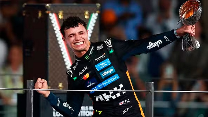 07/12/2025 — O inglês Lando Norris da escuderia McLaren é o campeão da temporada 2025 da Fórmula 1. Na última etapa do certame, chegou no terceiro lugar no Grande Prêmio de Abu Dhabi nos Emirados Árabes Unidos. Mas os quinze pontos conquistados foram o bastante para garantir o troféu. Ele chegou a 423 pontos na classificação geral, dois à frente do holandês Max Verstappen, o vencedor da última prova do ano. Para conquistar o título, o Norris venceu sete provas: Austrália, Mônaco, Áustria, Grã-Bretanha, Hungria, México e Brasil. Fez também os segundos lugares em oito provas e três terceiros lugares em três. Esse é o primeiro título do inglês na F-1. Ele estreou em 2019. Depois de resultados intermediários, destacou-se em 2024 ao terminar a temporada no segundo lugar. Fez 374 pontos contra 437 do campeão Max Verstappen.