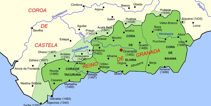 REINO NACÉRIDA — Foi uma unidade política que existiu na Península Ibérica entre 1238 e 1492. Incluía as atuais províncias espanholas de GranadaAlmeríaMálaga e uma parte das províncias de SevilhaCórdova e Xaém. As origens do reino encontram-se no desmembramento do Califado Almóada perante o avanço das tropas castelhanas. Em 1232, o Maomé 1.º declarou-se sultão e tornou-se o fundador da Dinastia Nacérida. A dinastia teve 22 sultões. O último sultão foi o Maomé 12, conhecido historicamente pelo nome de Boabdil. Ele governou entre os anos de 1482 a 1492. Foi destronado por um avanço liderado pelos reis cristãos Fernando de Aragão e Isabel de Castela. Depois disso, esses reis conseguiram expulsar os árabes da Península Ibérica.