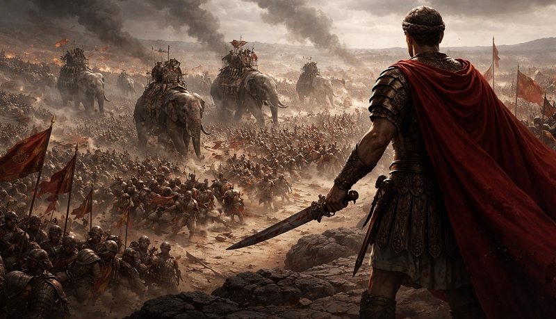 GUERRA CIVIL — A Segunda Guerra Civil da República Romana (49–45 a.C.) foi o confronto decisivo entre o Júlio César e a facção senatorial tradicionalista liderada pelo Cneu Pompeu Magno. A disputa de poder entre o César, com enorme prestígio militar, e o Senado, que tentou desarmá-lo, foi sangrenta. Ao cruzar o Rio Rubicão com sua legião, o César declarou guerra, tornando-se inimigo do estado. A guerra espalhou-se pela ItáliaGréciaEgito e norte da África. A Batalha de Farsalos (48 a.C.) na Grécia foi a vitória mais significativa do César, pois forçou o Pompeu a fugir para o Egito, onde foi assassinado. Com a derrota de todos os líderes senatoriais, o César retornou a Roma como líder supremo. Implementou reformas na república antes do seu assassinato no ano 44 a.C.