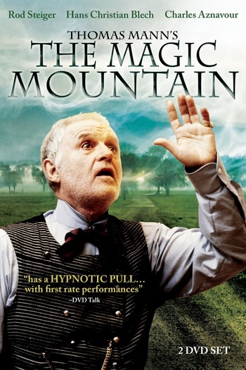 A história começa com a viagem do Hans Castorp a um sanatório de tuberculosos nas montanhas suíças. As três primeiras semanas do que seria uma visita temporária se arrasta. O personagem é seduzido pela vida repetitiva e estranhamente encantada dos pacientes. A imaginação dele é ativada por uma série de personagens vivamente delineados que se internam para se recuperarem — e para morrerem — na montanha. O protagonista custa a entender o que significa se apaixonar por um lugar marcado pela doença e pela morte. A perspectiva de volta para a cidade é procrastinada. À medida que as semanas se estendem em meses e depois em anos, o tempo parece ter parado. A obra pertence à tradição do romance de formação. Vive-se com o personagem momentos trágicos, absurdos.