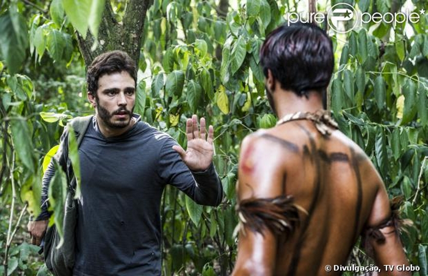 05/03/2014 — Os índios que participam da novela Além do Horizonte (19 horas) são de uma tribo localizada na região de Paraty, Rio de Janeiro. Não são tão primitivos como a ficção faz crer. Mas eles são muito apegados às suas raízes. Alguns deles são até contrários aos casamentos com brancos. Um deles, dentre os 25 escalados para irem aos estúdios da TV Globo para gravar a novela, presta consultoria à produção, ensinando tudo sobre costumes, linguagem e utensílios. Na trama, a tribo é o ponto de encontro entre na mata para os personagens William (Thiago Rodrigues), Lili (Juliana Paiva) e Marlon (Rodrigo Simas). A produção de arte da novela também se valeu do Museu do Índio para compor a temática.